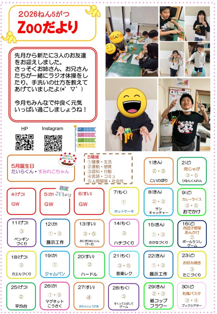 Zooだより 2026年5月号 2026 4/27 Zoo 2026年4月27日 Zoo よかったらシェアしてね! URLをコピーしました! URLをコピーしました! Zooの駅だより 2026年5月号 関連記事 Zooだより 2026年4月号 2026年3月31日 Zooだより 2026年3月号 2026年2月25日 Zooだより 2026年2月号 2026年2月5日 Zooだより 2026年1月号 2026年2月5日 Zooだより 2025年12月号 2025年11月26日 Zooだより 2025年11月号 2025年10月27日 Zooだより2025年10月号 2025年9月29日 Zooだより2025年9月号 2025年9月29日